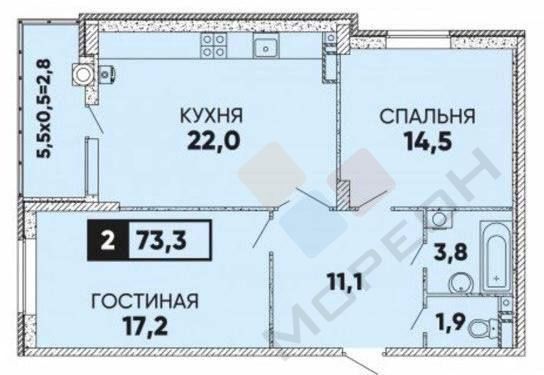 Площадь: 73.5 м2
