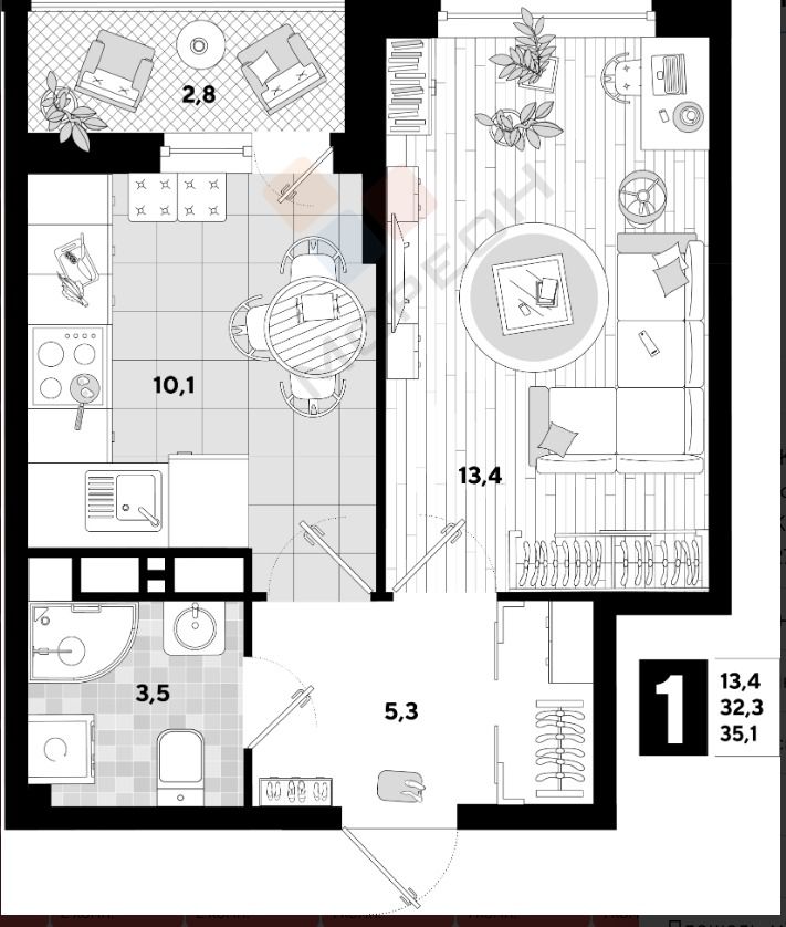 Площадь: 32.3 м2