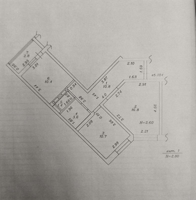 Площадь: 55.1 м2 (комнаты: 10.4-10.7м2)